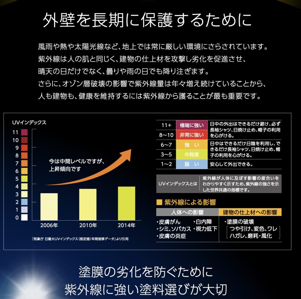 高性能な外壁用塗料で、紫外線や風雨から外壁を長期間保護する機能が人気。耐候性・耐汚染性が特に高評価。